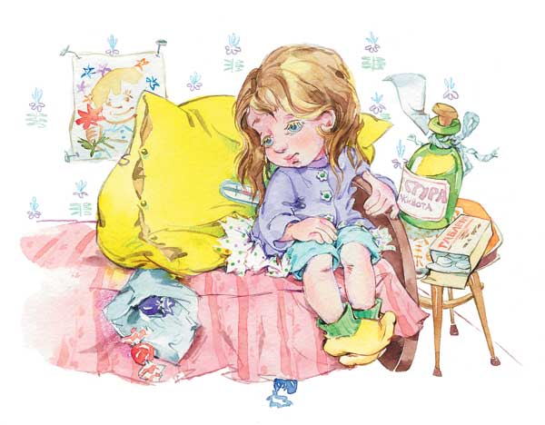 – Ничего не поделаешь, – покачала головой мама. – Ты всё ещё больна и тебе придётся остаться дома. Ночью тебе было совсем плохо. Ума не приложу, что могло случиться. Вроде бы ни за ужином, ни за обедом ты ничего плохого не ела.