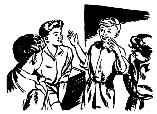 Она сурово посмотрела на Джанет и отряхнула юбку. Затем отошла от ребят и прислонилась к стене, насвистывая что-то, будто ей дела не было ни до кого из «Секретной семёрки».