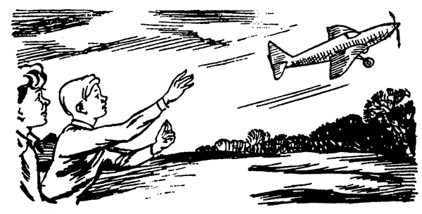 Тот мгновенно поднялся в воздух, издавая громкий жужжащий звук. Ребята с восторгом смотрели, как он описал красивый правильный круг, затем поднялся высоко в воздух и полетел через поле, как самый настоящий самолёт.