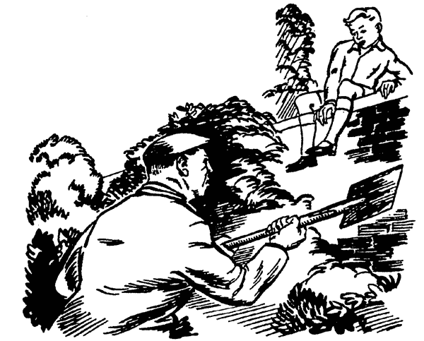 – Он этого не сделает, – сказал злой садовник. – Если ты сейчас же не слезешь с забора, я столкну тебя с него! – И он выставил вперёд лопату, будто намеревался осуществить свою угрозу.