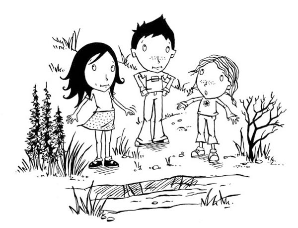 На этот раз они вышли к странному пруду с жёлтовато-мутной водой, которая маслянисто блестела. Пруд не понравился Бет, и ребята опять вернулись к дубу.