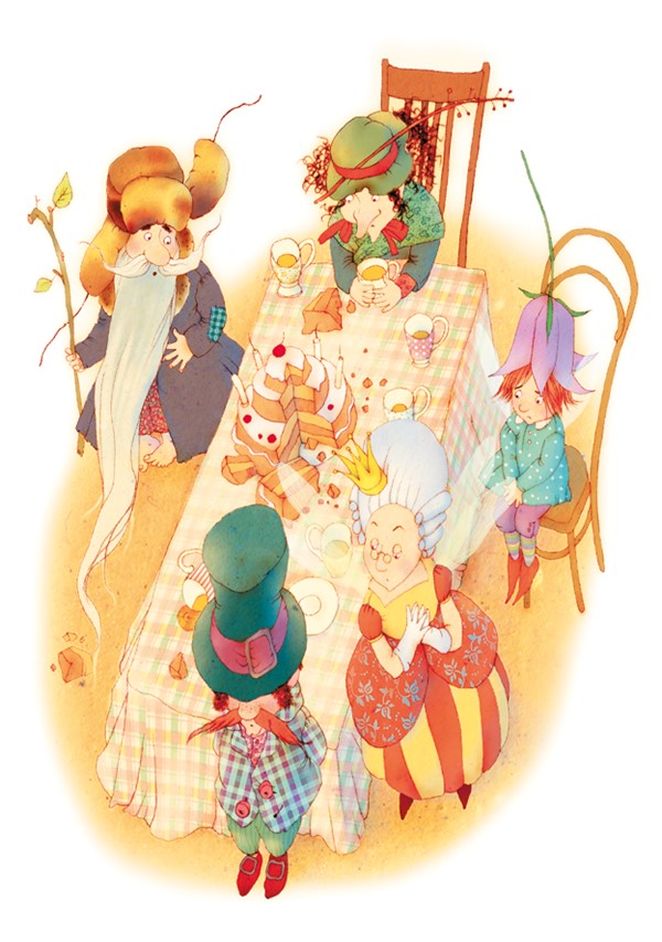 Гном Пимпом очень обрадовался красивому и вкусному подарку. У него как раз собрались гости – Пчелиная Царица и Лесовик со своей тётушкой Кикиморой. Пимпом заварил чай с чабрецом и мятой, разрезал пирог и стал угощать друзей. Но никто не смог проглотить ни кусочка – у пирога был ужасный вкус и запах! Пимпом нахмурил брови и сердито сказал Чирку: