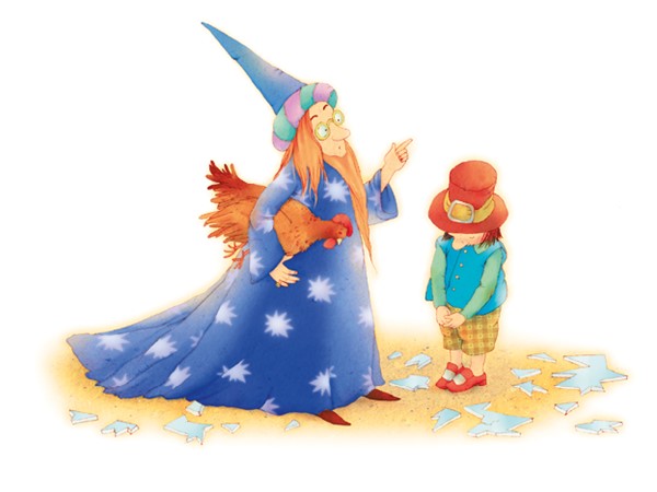 – Курочка-сестричка,Снеси скорей яичкоИз чистого шоколада —Другого мне не надо!Не успел Хохо закончить своё заклинание, как курочка громко закудахтала, а волшебник поднял шоколадное яйцо, которое она только что для него снесла. Хохо положил яичко на фарфоровую тарелку и произнёс: