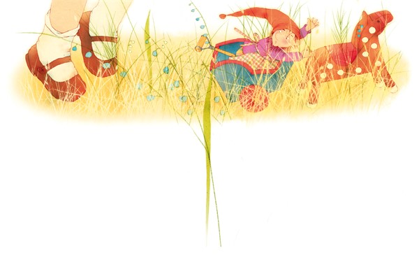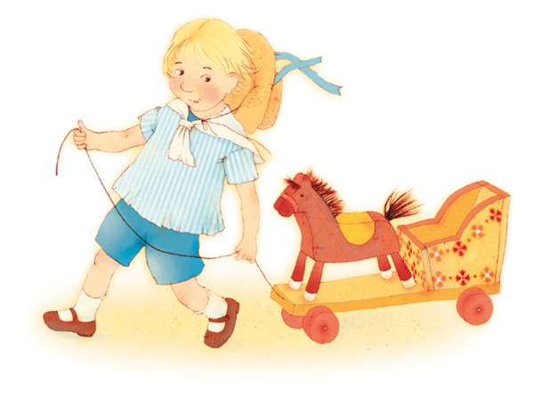 Гном отправился мыть руки и велел лошадке стоять смирно и сохнуть на солнышке. Но едва он ушёл, как в саду появился – кто бы вы думали? Денни собственной персоной! Он сразу заметил деревянную лошадку с тележкой и от удивления застыл на месте. Неужели это и в самом деле его игрушка? Не может быть! Какая она хорошенькая! Что за прелесть эта гнедая лошадка в белых яблоках! А синяя тележка с красными колёсами… Да это же просто чудо! Денни побежал к игрушке, чтобы взять её и поскорее отнести к себе в детскую.