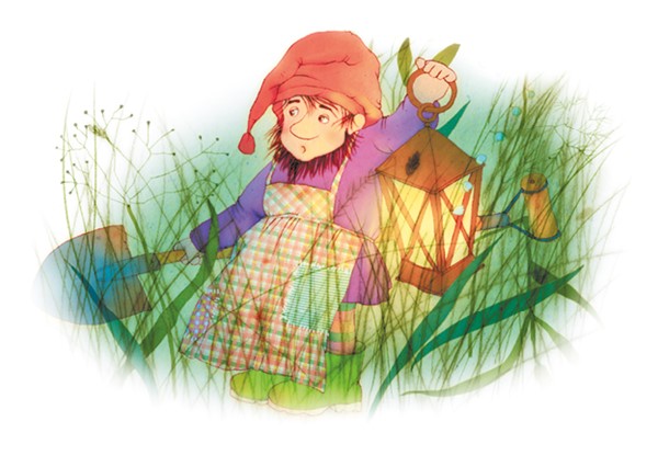 Лошадка оглянулась и увидела в лунном свете крошечного человечка в рабочем кожаном фартуке, на плече он нёс лопату. Это был садовый гном. Он заботливо спросил: