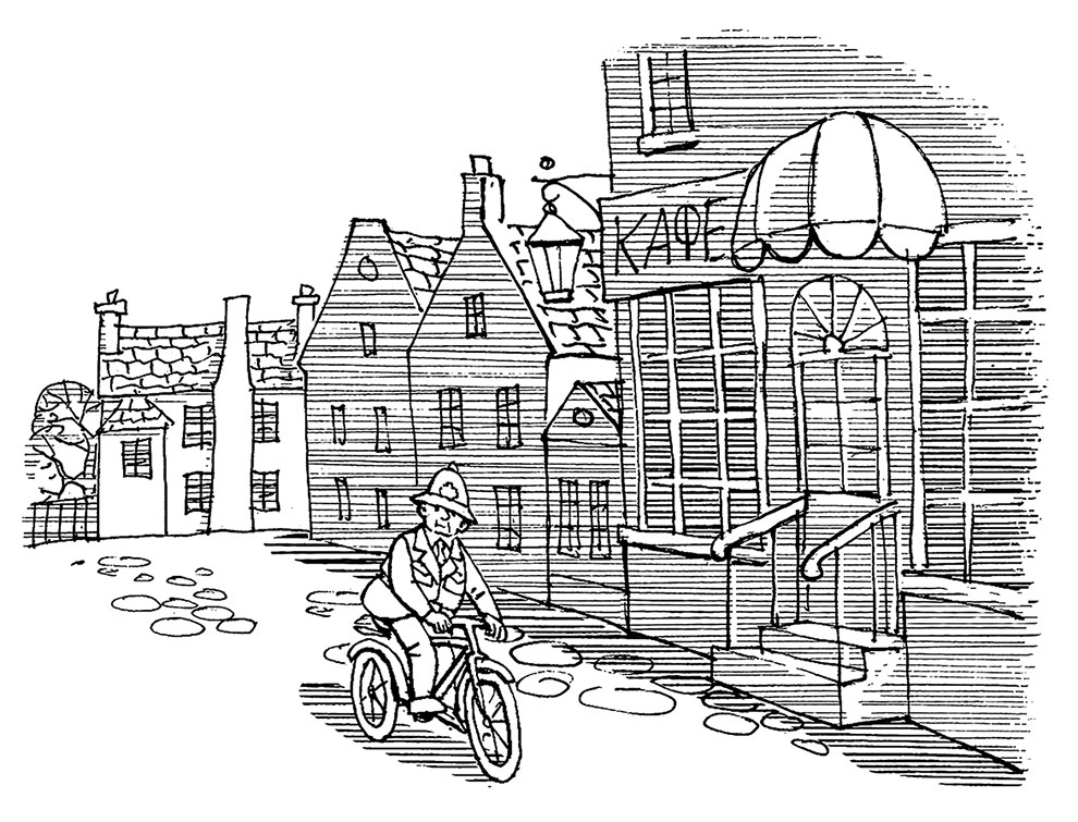 Прошествовав через зал, констебль занял место рядом со столиком юных сыщиков и заказал чашку какао и булочку. Он даже не поблагодарил хозяйку, а уставился на юных сыщиков.