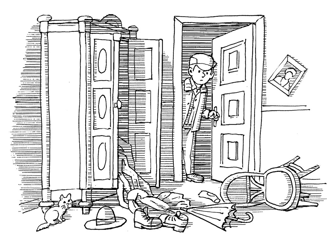 – Да нет. Я особо не осматривался. Только увидел, что всё перевёрнуто, сразу вызвал полицию и ушёл – ведь до их приезда ничего нельзя трогать.
