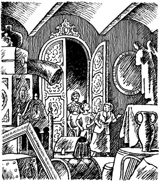 Наверху была большая комната с книжными стеллажами на все четыре стены, от пола до потолка. Дети изумлённо уставились на разноцветные корешки со старинным тиснением. Они никогда в жизни не видели такого собрания книг – разве что в городской библиотеке.