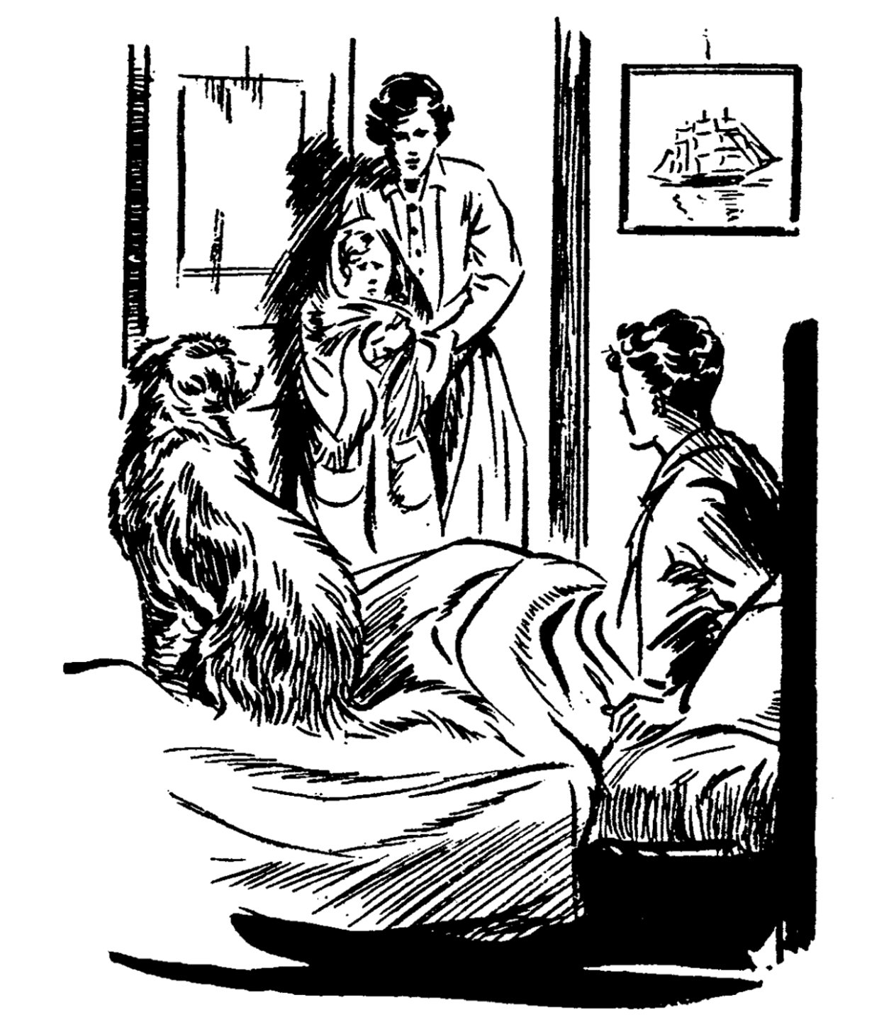 Она отнесла суп наверх. Берта уже уютно сидела в своей кроватке. Энн мирно спала, словно происходившее её никак не касалось. Тимми воспользовался отсутствием хозяйки, спрыгнул с её кровати и пошёл обнюхать гостью. Делал он это аккуратно, Берта протянула руку и погладила его.