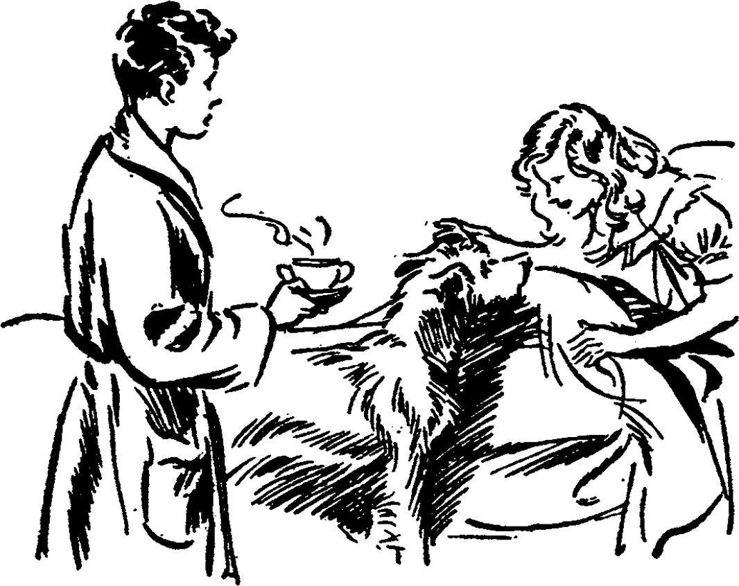 Джордж вошла с супом и совсем не обрадовалась, увидев, что Тимми стоит у складной кровати, а Берта его гладит. Она бухнула тарелку на кровать и отпихнула Тимми.