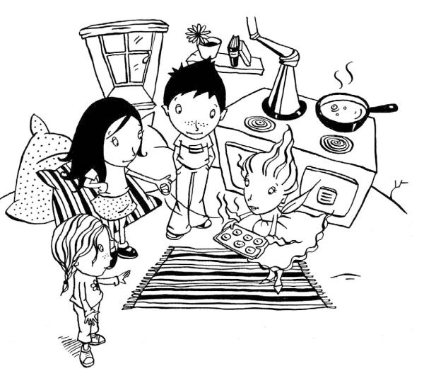 И, держась за верёвку, они полезли дальше. Совсем скоро они оказались у дома феи Ниточки и окликнули её. Фея стояла у плиты и что-то пекла.