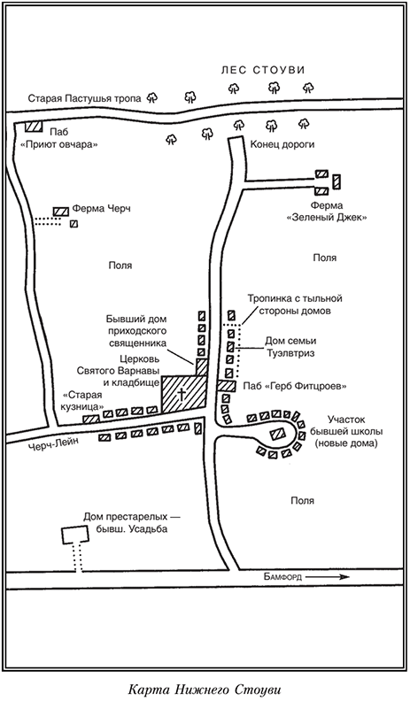 Гай развернул карту. Ветер, чтобы доказать, что он еще не совсем выдохся, подхватил ее и принялся трепать, угрожая вырвать из рук. Гай сел на корточки, расстелил карту на земле и придавил сверху ладонями. На нее тут же упала еще одна капля дождя. Ближайшим к нему населенным пунктом оказалась деревня Нижний Стоуви, но до нее было еще добрых две мили пути, причем не по тропе, а лесом, напрямик. Кроме того, именно в Нижнем Стоуви жила официантка Черил. Скорее всего, во второй половине дня она свободна; Гай совсем не жаждал встречи с ней. Кстати, интересно, как Черил добирается на работу и обратно? Гай смутно припомнил маленький мотороллер сбоку от паба.