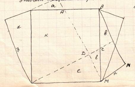 20-го я сдавал геометрию. Я очень люблю этот точный предмет, потому, не опасаясь, взял билет. Досталось мне: определить площадь параллелограмма и доказать теорему: а (b1 – c1) = b2 – c2, где а – гипотенуза, b и c – катеты, b1 b c1 – их проекции. Буза, конечно.