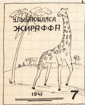Недавно говорили с Карповым насчет журнала «Улыбающаяся жираффа», который мы выпускали в конце 1940 года. Журнал пользовался большим успехом. В будущем учебном году он будет выходить еще лучше. Вот это я нарисовал – первая страница первого номера (в 1941 году мы выпустили 6 номеров). Рассказы в журнале мы помещаем только свои. (Рис.4)