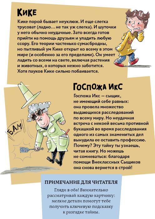 Поэтому донья Икс очень полагалась на своих учеников, Внеклассных Сыщиков, которые не только помогали ей в расследованиях, но и заботились о её безопасности.
