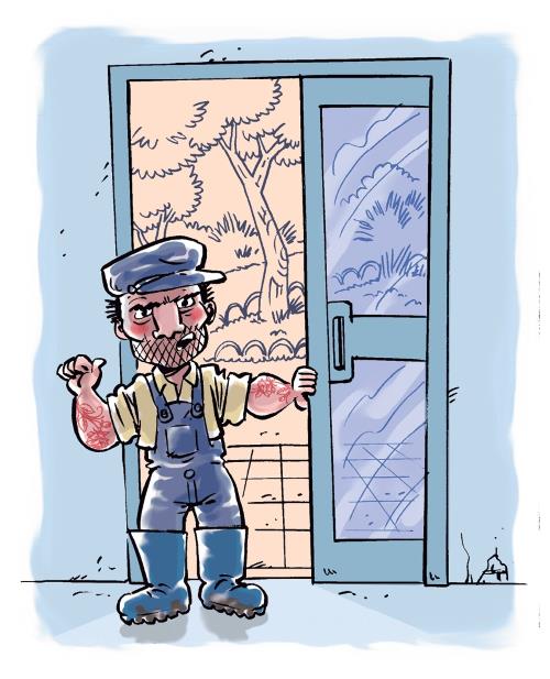 Внеклассным Сыщикам пришлось развернуться ещё раз, чтобы увидеть, кто это сказал. Им приходилось вертеться то туда, то сюда так часто, что Кике даже слегка замутило. В проёме застеклённой двери, ведущей в сад, стоял невысокий крепыш – с щетиной на подбородке, татуировками на руках, в кепке, джинсах и высоких сапогах.