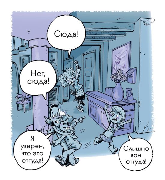 Стараясь определить направление звука, ребята то и дело натыкались друг на друга, а то и сталкивались на бегу в дверях и коридорах.