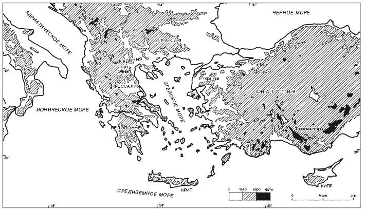 Греческие колонии, простиравшиеся от побережья Черного моря на северо-востоке до Марселя и берегов Испании на западе, а также включавшие в себя Киренаику на западном побережье Северной Африки, были более разнообразными, в том числе с точки зрения климатических условий, но везде, где условия не сильно отличались от тех, к которым греки привыкли на родине, или где местность еще не была заселена достаточно развитыми сообществами, способными на сопротивление эллинам, разрастались многочисленные греческие поселения. Ниже в этой главе пойдет речь о самой Греции, полуострове и бассейне Эгейского моря, ибо именно там сформировалась древнегреческая цивилизация. Однако следует помнить, что не все сказанное ниже о климате и сельском хозяйстве можно применить (по крайней мере, без каких-либо изменений) ко всей колонизированной эллинами территории.