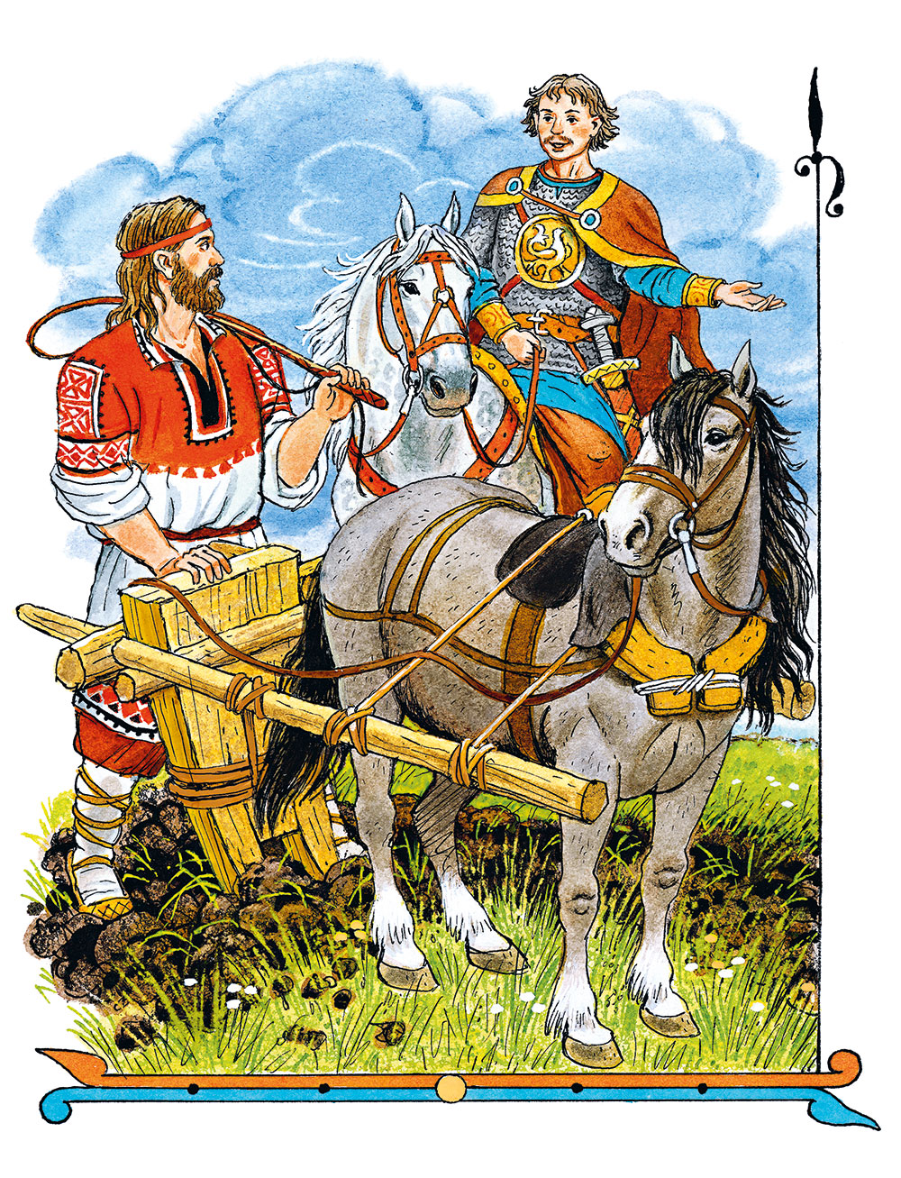 – Ох, неладное дело мы сделали, в борозде соху оставили. Ты пошли молодцов-дружинников чтобы сошку из борозды выдернули, землю бы с неё вытряхнули, положили бы соху под ракитовый куст.