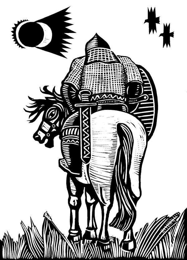 В первый день месяца мая под вечер, подходя к реке Северский Донец, князь Игорь взглянул на заходящее солнце: внезапно оно так потемнело, что проступили на небе мерцающие звёзды, а само светило превратилось как бы в месяц с горящими углями на рогах. И увидел князь Игорь, что покрыл этот двурогий месяц его отважную дружину сияющей тьмой, как будто пеленой. Понурили головы дружинники и промолвили Игорю: – Не сулит нам добра это знамение! Встав перед притихшими воинами, князь Игорь сказал: – Братья и дружина! Божественной тайны не ведает никто, а знамение творит Господь Бог, как и весь мир. Что нам дарует Бог на благо или на беду – это мы вскоре увидим. Одно я знаю твёрдо: лучше быть убитым в жестоком бою, чем быть пленённым! Ярая страсть опалила княжеский разум, и жажда славы, жажда отведать донской воды заслонила ему небесное знамение. – Хочу, – решительно произнёс Игорь, – хочу копьё своё преломить о Половецкое поле, хочу с вами, русичи, либо буйную голову сложить в последнем сражении, либо победить на поле брани и шлемом испить воды из синего Дона.