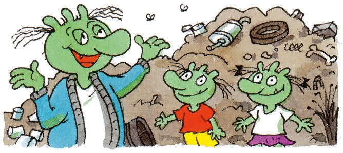 – Тухлая половая тряпка, настоящее путешествие! Какое счастье! Как волнительно! Скорее бы! – кричит на всю свалку бабуля Огри. Она заталкивает в синий мусорный мешок старый граммофон и свою любимую пластинку.