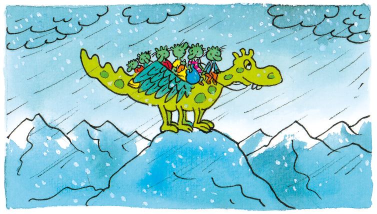 – Пора отправляться! – прокричал дедуля Огри, и все стали карабкаться на бугристую спину Огнепыха.