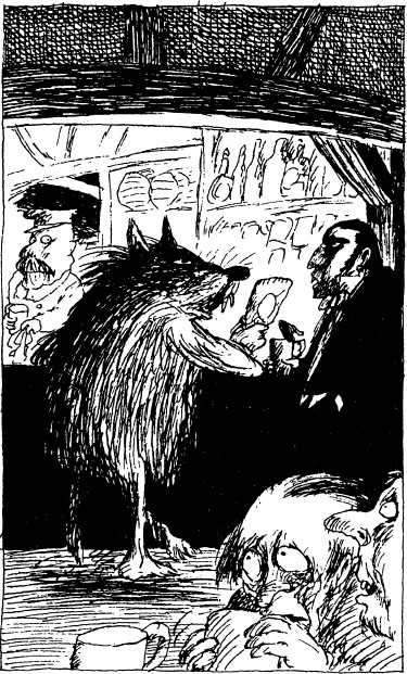 ‘Sometimes, but sometimes I forget.’ Wilf looked around the tavern once more. ‘Mind you, I don’t run so much when I’m not a werewolf. When I’m an ordinary human being I like to sit at home with my legs up. I rest because I know that as soon as the full moon comes up again I go to bed and in about ten or twenty minutes or so I look down at the back of my hands and the hairs are starting to grow.’
