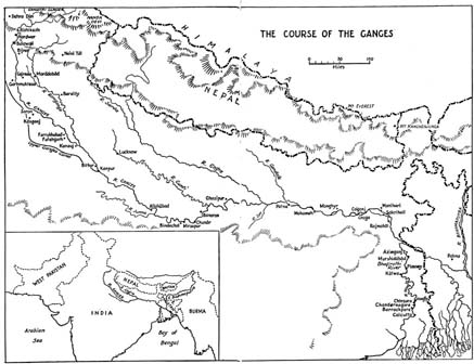 This is the story of a twelve-hundred-mile journey down the Ganges from the place where it enters the Plains of India to the Sandheads, forty miles offshore in the Bay of Bengal, made by two Europeans in the winter of 1963–4. It is not an heroic story such as that of Franklin and his companions chewing leather on the banks of the Coppermine River but having got there (it is difficult to envy Franklin); of Ives seeing for the first time the great canyon of the Colorado; of Garnier reaching the headwaters of the Yangtze; or of Bailey and Morshead travelling sixteen hundred miles on foot through the gorges of the Tsangpo. We were born too late for such feats, even if we had had the courage and determination to perform them. We were even prevented from emulating the painter James Fraser’s long journey to the sources of the Bhagirathi Ganges – one which is made by numerous pilgrims – by the coming of the snow and our own meagre resources. It is not a book about India today; neither is it concerned with politics or economics. It is certainly not erudite, as must be obvious to anyone who has the patience to read it. It is about the river as we found it.