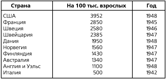 Насколько широко распространены психические заболевания в различных странах западного мира? Самое удивительное, что данных, отвечающих на этот вопрос, вообще не существует. Имея точные сравнительные статистические показатели о материальных ресурсах, занятости, о рождаемости и смертности, мы не располагаем соответствующей информацией о психических заболеваниях. В лучшем случае у нас есть некоторые сведения по ряду стран, таких, как США и Швеция. Но они дают представление только о числе пациентов в психиатрических лечебницах и не могут помочь в определении сравнительной частоты психических расстройств. В действительности же эти данные указывают не столько на увеличение количества психических заболеваний, сколько на расширение возможностей психиатрических лечебных заведений и улучшение медицинского обслуживания в них[4]. Тот факт, что больше половины всех больничных коек в США занято пациентами с психическими расстройствами, на которых мы ежегодно расходуем свыше миллиарда долларов, может, скорее, свидетельствовать не о росте числа душевнобольных, а лишь о развитии медицинского обслуживания. Однако есть другие цифры, с большей определенностью указывающие на распространение довольно тяжелых случаев нарушений психики. Если во время последней войны 17,7 % всех призывников были признаны негодными к военной службе из-за психических заболеваний, то это, несомненно, свидетельствует о высокой степени психического неблагополучия, даже если у нас нет аналогичных показателей для сравнения с прошлым или с другими странами.