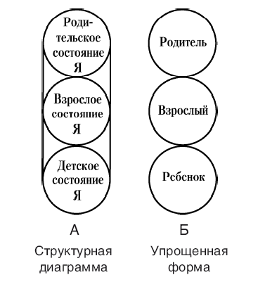 В терминах психологии состояние Я можно описать феноменологически как связную систему чувств, а операционально – как связную систему образцов поведения. Практически это означает, что определенному набору чувств соответствует столь же определенный набор образцов поведения. Каждый индивидуум обладает ограниченным количеством таких состояний Я, каждое из которых не роль, а психологическая реальность. Набор этих состояний можно распределить так: 1) состояния Я, сходные с образами родителей; 2) состояния Я, автономно направленные на объективную оценку реальности, и 3) состояния Я, представляющие наиболее архаичные образцы чувств и поведения, зафиксированные в раннем детстве. В обычной речи их именуют Родитель, Взрослый и Ребенок, причем эти простые термины используются даже в самых строгих и формальных обсуждениях.