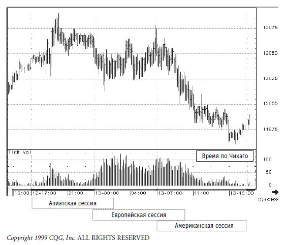 Внебиржевое подразделение Чикагской биржи GLOBEX открывается в 23.30, однако ликвидность валютных фьючерсов во внебиржевое время на порядок ниже биржевой сессии.