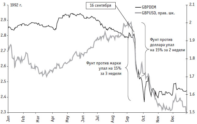 Рис. 1.11. История падения фунта стерлингов в 1992 г.
