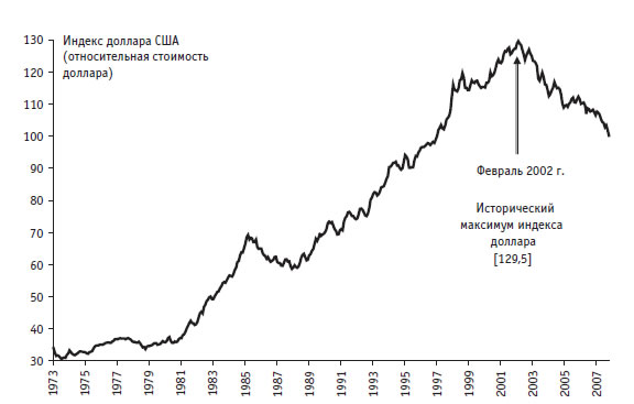 Рис. 1.12. Динамика относительной стоимости индекса доллара США