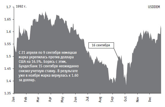 Рис. 1.14. История «американских горок» немецкой марки против доллара США в 1992 г.