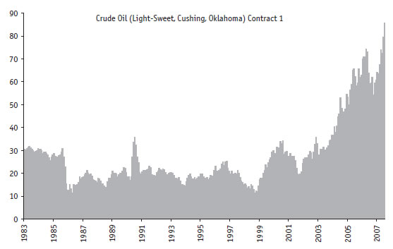 16 октября 1973 г. – нефтяной шок. Первое значительное повышение цен на нефть: 16 октября цены были повышены на 70 %, а в итоге выросли почти в четыре раза. В результате столь сильного роста котировок нефти произошло перераспределение доходов, получаемых от добычи нефти в пользу стран ОПЕК. Годовой уровень доходов последних возрос с $14.3 млрд в 1972 г. до $90.5 млрд в 1974 г. В ценах 2003 г. это $63 млрд и $350 млрд соответственно. Неплохая прибавка! Нефтяной шок вызвал сильную инфляцию во всех индустриальных странах и резкий спад в мировой экономике в 1974–1975 гг. В этот же период значительно выросла цена на золото.