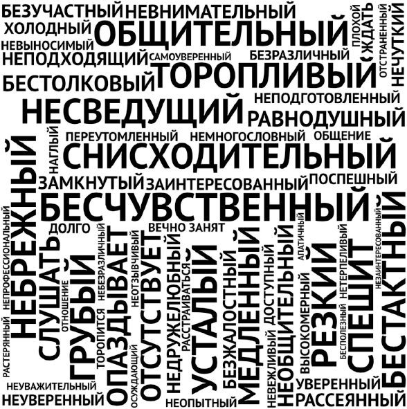 Но даже и без начальственного диктата вся медицинская практика на индивидуальном уровне устроена так, что подталкивает к неадекватной диагностике. Средняя продолжительность амбулаторного приема для пациента, явившегося на повторный осмотр, составляет семь минут, на нового пациента отводится 12 минут. Это абсурдное ограничение во времени свойственно не только США. Когда я был в медицинском центре компании Samsung в Южной Корее, администраторы сказали мне, что прием врача в этом центре длится в среднем две минуты. Стоит ли в подобной ситуации удивляться такому множеству ошибочных диагнозов? Как пациенты, так и сами врачи убеждены, что медики слишком спешат. Недавно сотрудники медицинского центра Алабамского университета в Бирмингеме попросили пациентов двумя словами описать их лечащих врачей[19]. Результат, наглядно представленный в виде облака слов, приведен на рис. 2.1. Содержание рисунка говорит само за себя.