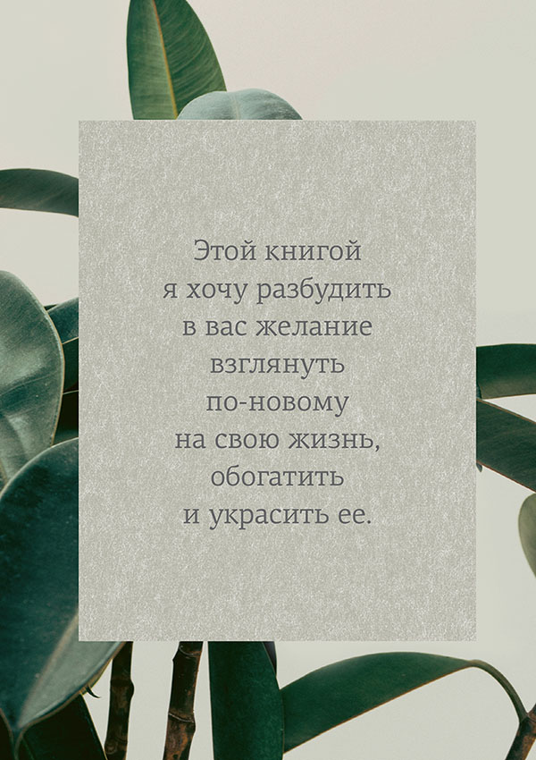 Я обнаружила, что, будучи человеком по природе несколько тревожным и настороженным, я довольно часто прибегаю к разным «японским» способам, когда требуется обрести ясность, перестроиться и выстоять в жизненных испытаниях. Именно этим я и хочу поделиться с вами: не рассказом об абстрактной Японии и ее абстрактной культуре, а принципами и стратегиями, которые помогают мне выйти из сложных ситуаций, преодолеть препоны и рогатки современного бытия. Взявшись за эту задачу, обдумывая ее, проговаривая про себя и перенося на бумагу самую суть этих принципов и традиций, я словно заново оценила их и полюбила – и, пожалуй, даже больше, чем прежде. Я поняла, что опираюсь на них, даже сама того не осознавая. Надеюсь, что и вам они подарят комфорт, счастье и пищу для ума – те радости, что таятся в любви к тихим, глубоким, обыденным и светлым моментам на нашем долгом жизненном пути.