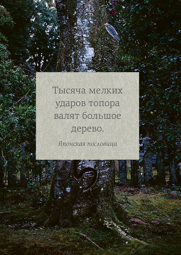 В японской культурной жизни много такого, что можно (да и должно, думаю) принять повсеместно. Как изменить настроение, найдя минутку для чашки чая или полчаса для прогулки, – эти, да и другие приемы представляют собой безусловную ценность для тех, кто чувствует себя измотанным, загнанным, снедаемым тревогой, вечно опаздывающим и не успевающим ничего. Да, слишком уж часто мы чувствуем, что увязли, затравлены и выжаты до предела, до последней капли. Мы постоянно испытываем стресс в погоне за совершенством: изо всех сил стараемся быть счастливыми (и никогда не печалиться, не сердиться и не расстраиваться), стараемся всегда потрясающе выглядеть. Нам говорят, что мы должны успевать все: строить успешную карьеру и при этом как следует заниматься семьей, хорошо и вкусно питаться и при этом иметь красивое тело… Однако такой подход к жизни шаток и ненадежен, потому что не принимает в расчет хаос и неразбериху реальной жизни: сроки то и дело отодвигаются, у сотрудников случаются тяжелые дни, и они срывают на нас свое дурное расположение духа, внезапно заболеваем мы сами или наши родные. Словом, жизнь – сплошной стресс и напряг, так что в лучшем случае запрос на тотальное соответствие идеалу недостижим, а в худшем – просто опасен.