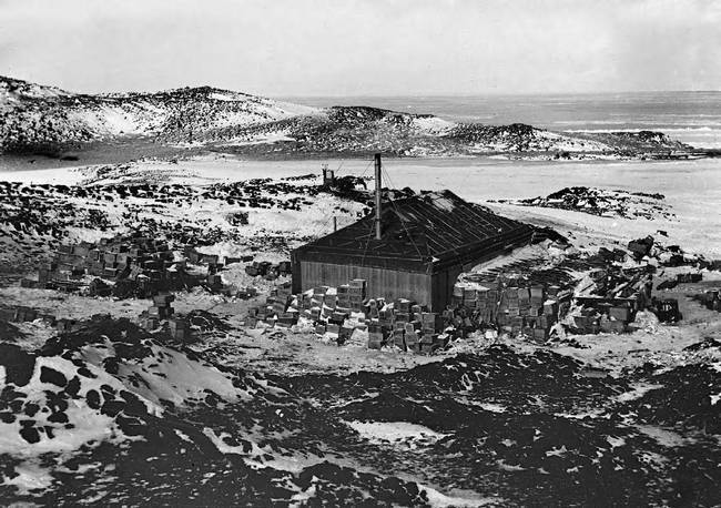 Собачьи конуры располагались вплотную к крыльцу, но в них мы держали постоянно на цепи лишь трех собак. Метеорологическая станция помещалась с наветренной стороны дома, наверху небольшого хребта, метров на шесть выше дома и в 12 метрах над уровнем моря. Туда вела естественная тропинка. Адамс устроил эту станцию и с 22 марта на ней начались регулярные метеорологические наблюдения. Фундаментом для метеорологической будки служил тяжелый деревянный ящик, поставленный на скалы и на три четверти наполненный камнями. Вокруг него навалили обломки кенита, а все промежутки между ними заполнили вулканической землей, которую облили водой. Конструкция получилась прочная, как камень. Внутрь ящика по обеим сторонам поставили и закрепили камнями и болтами два столба, к которым крепко привинтили болтами метеорологическую будку стандартного размера конструкции Стивенсона. Ввиду того что запись показаний инструментов приходилось делать через каждые два часа и днем и ночью, а в плохую погоду наблюдатель мог легко заблудиться и не найти дороги к будке, по пути туда поставили ряд столбов, укрепленных в почве льдом, и между ними протянули веревку, по которой можно было добраться до будки даже во время самой непроглядной метели.