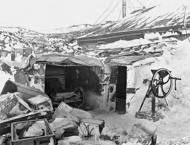 С правого края фото – тропинка к метеорологической станции. На заднем плане – склон Эребуса. На нижнем снимке – гараж Дэя с автомобилем