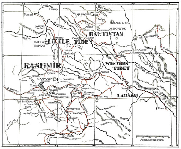 Из ранее изданных трудов, «Долина Кашмира» сэра Уолтера Лоуренса (Walter Lawrence)2 остается наиболее всеохватывающей, ибо дает удивительно полное представление о предмете, о жизни людей, их нравах и обычаях. Этой работе я обязан многими ссылками. Также хочу с благодарностью отметить ценность сведений, которые я почерпнул из «Истории Западного Тибета» преподобного А. Г. Франке (A.H. Francke)3, и из великолепного труда о Кашмире, недавно выпущенного сэром Фрэнсисом Янгхазбендом и майором Молино (Molyneux)4.