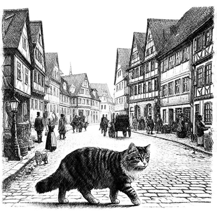 Ist denn das auf zwei Füßen aufrecht Einhergehen etwas so Großes, daß das Geschlecht, welches sich Mensch nennt, sich die Herrschaft über uns alle, die wir mit sichererem Gleichgewicht auf vieren daherwandeln, anmaßen darf? Aber ich weiß es, sie bilden sich was Großes ein auf etwas, was in ihrem Kopfe sitzen soll und das sie die Vernunft nennen. Ich weiß mir keine rechte Vorstellung zu machen, was sie darunter verstehen, aber so viel ist gewiß, daß wenn, wie ich es aus gewissen Reden meines Herrn und Gönners schließen darf, Vernunft nichts anderes heißt, als die Fähigkeit, mit Bewußtsein zu handeln und keine dummen Streiche zu machen, ich mit keinem Menschen tausche. – Ich glaube überhaupt, daß man sich das Bewußtsein nur angewöhnt; durch das Leben und zum Leben kommt man doch, man weiß selbst nicht wie. Wenigstens ist es mir so gegangen, und wie ich vernehme, weiß auch kein einziger Mensch auf Erden das Wie und Wo seiner Geburt aus eigner Erfahrung, sondern nur durch Tradition, die noch dazu öfters sehr unsicher ist. Städte streiten sich um die Geburt eines berühmten Mannes, und so wird es, da ich selbst nichts Entscheidendes darüber weiß, immerdar ungewiß bleiben, ob ich in dem Keller, auf dem Boden, oder in dem Holzstall das Licht der Welt erblickte, oder vielmehr nicht erblickte, sondern nur in der Welt erblickt wurde von der teueren Mama. Denn wie es unserm Geschlecht eigen, waren meine Augen verschleiert. Ganz dunkel erinnere ich mich gewisser knurrender, prustender Töne, die um mich her erklangen, und die ich beinahe wider meinen Willen hervorbringe, wenn mich der Zorn überwältigt. Deutlicher und beinahe mit vollem Bewußtsein finde ich mich in einem sehr engen Behältnis mit weichen Wänden eingeschlossen, kaum fähig, Atem zu schöpfen und in Not und Angst ein klägliches Jammergeschrei erhebend. Ich fühle, daß etwas in das Behältnis hinabgriff und mich sehr unsanft beim Leibe packte, und dies gab mir Gelegenheit, die erste wunderbare Kraft, womit mich die Natur begabt, zu fühlen und zu üben. Aus meinen reich überpelzten Vorderpfoten schnellte ich spitze gelenkige Krallen hervor und grub sie ein in das Ding, das mich gepackt und das, wie ich später gelernt, nichts anderes sein konnte als eine menschliche Hand. Diese Hand zog mich aber heraus aus dem Behältnis und warf mich hin, und gleich darauf fühlte ich zwei heftige Schläge auf den beiden Seiten des Gesichts, über die jetzt ein, wie ich wohl sagen mag, stattlicher Bart herüberragt. Die Hand teilte mir, wie ich jetzt beurteilen kann, von jenem Muskelspiel der Pfoten verletzt, ein paar Ohrfeigen zu; ich machte die erste Erfahrung von moralischer Ursache und Wirkung, und eben ein moralischer Instinkt trieb mich an, die Krallen ebenso schnell wieder einzuziehen, als ich sie hervorgeschleudert. Später hat man dieses Einziehen der Krallen mit Recht als einen Akt der höchsten Bonhommie und Liebenswürdigkeit anerkannt und mit dem Namen» Samtpfötchen «bezeichnet.