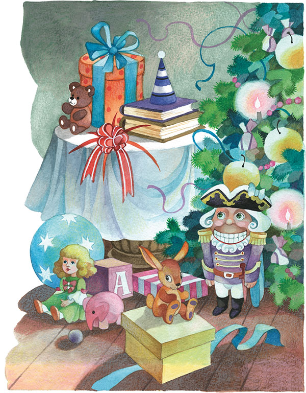 Немного успокоившись, дети решили посмотреть книги с картинками: редкостные цветы, люди в разноцветных нарядах и играющие дети были так хорошо изображены, что казались живыми, – но только взяли первую книжку, как снова звякнул колокольчик. Фриц и Мари поняли, что настал черёд подаркам крёстного Дроссельмайера, и подбежали к стоявшему у стены столу.
