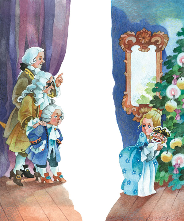 Шум ссоры привлёк внимание родителей и крёстного Дроссельмайера. К огорчению Мари, крёстный принял сторону Фрица, но герр Штальбаум возразил: