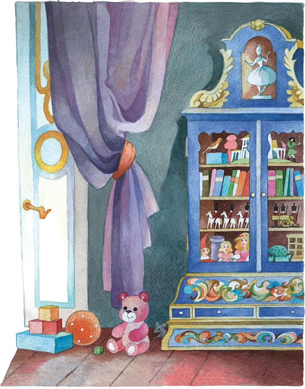 В гостиной доктора Штальбаума, сразу же, как войдёте, слева у стены стоит высокий шкаф, в котором дети хранят все замечательные игрушки, которые ежегодно получают в подарок. Луиза была совсем ещё маленькой, когда герр Штальбаум заказал этот шкаф искусному столяру. Это был очень необычный шкаф: с прозрачными стёклами, вставленными как-то так, что вещи в нём казались гораздо красивее, чем в руках детей.