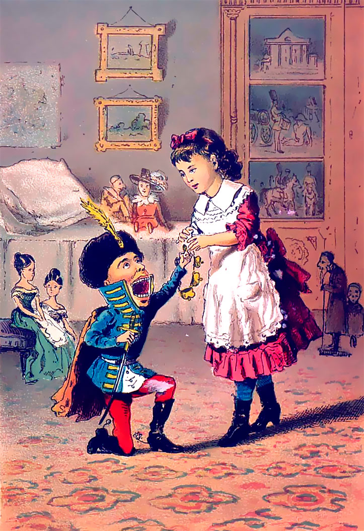 – Подавай мне твои конфеты, подавай мне твои леденцы, подавай твой шоколад, маленькая девочка, а не то я перегрызу твоего Щелкуна, твоего Щелкунчику!