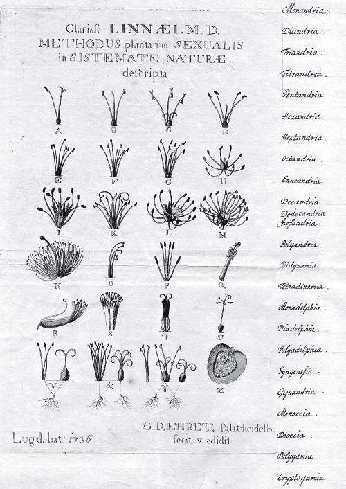 Гораздо более детальной была его система растений. Все растения Линней разделил на 24 класса, различающихся по строению цветков. Первые 13 классов он различал по числу тычинок. К XIV и XV классам он отнес растения с разной длиной тычинок, к XVI–XIX классам – растения со сросшимися тычинками, различающиеся разным характером их срастания, к XX классу – растения со сросшимися тычинками и пестиком, к XXI–XXIII классам – однодомные, двудомные и растения, у которых часть цветков однополые, а часть двуполые. В XXIV класс вошли растения, не имеющие цветков (тайнобрачные).