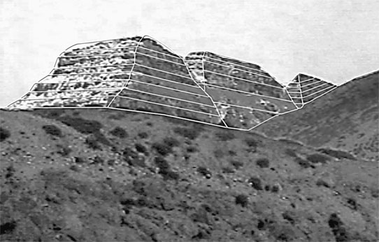 Закончив зарисовки и фотографирование, я продолжил рассматривать вторую пирамидальную гору, которая просматривалась достаточно хорошо. Она была очень похожа на ступенчатые пирамиды, которые я не раз видел в Латинской Америке. Но в сравнении с ними эта гора была несравненно больше и по размерам, видимо, превосходила даже великую пирамиду Хеопса в Египте.