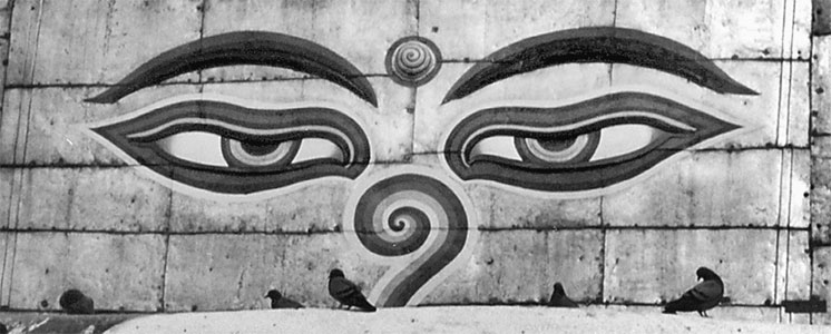 Глаза на ступе Сваямбанат смотрят на Кайлас