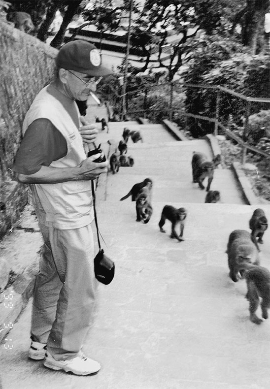 Рафаэль Юсупов в окружении обезьян